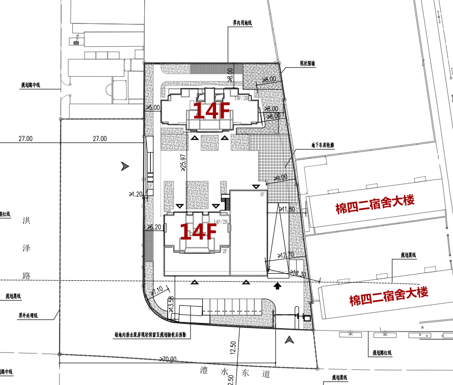 将建立2栋14层到顶小高层,规画104户,户均面积约77平米。