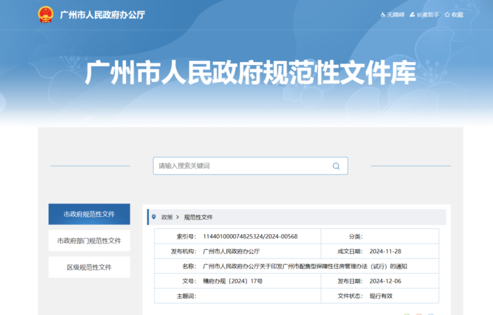 12月6日,广州也公示《广州市配售型保险性住房惩处目标(试行)》的奉告。