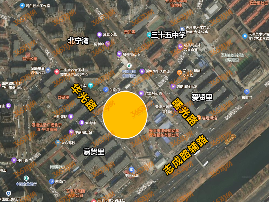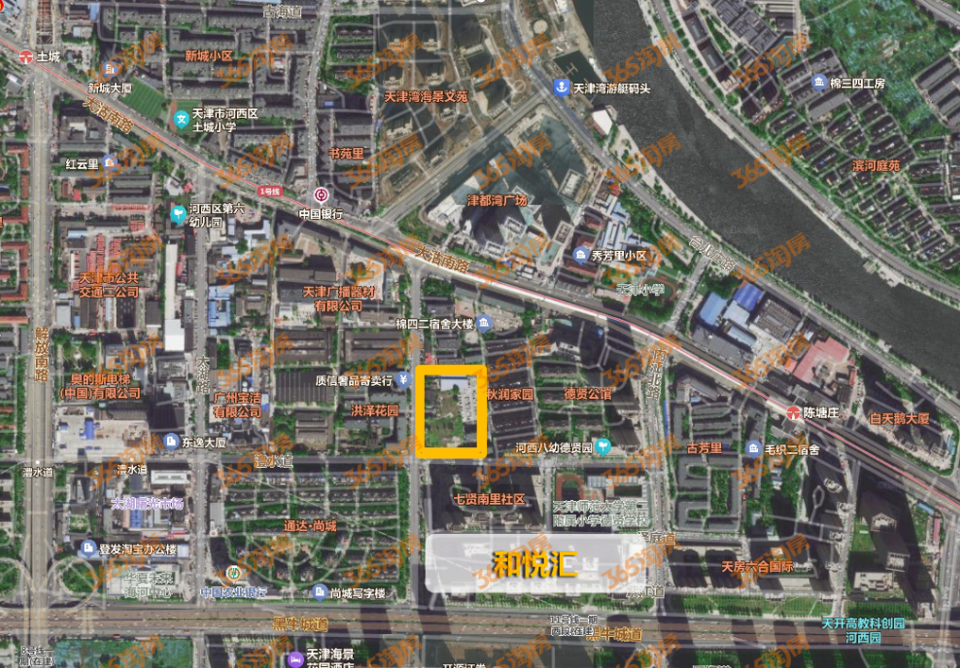 北侧与海河直线距离约600米,邻近有地铁1号线陈塘庄站、和悦汇等。