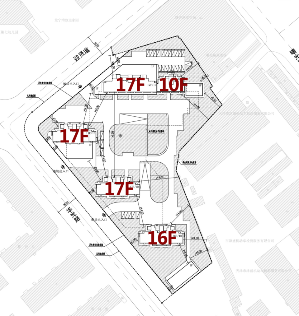 规画3栋17层到顶小高层,设有架空层。